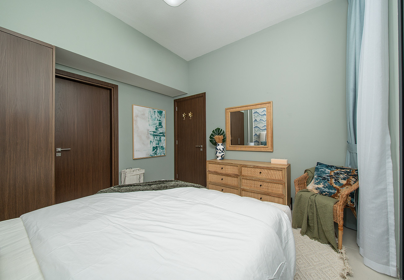 Fully furnished 1-bedroom apartment on the 5th floor in Blue Bay Walk, Ajmal Makan. The unit features a bright living area, fully equipped kitchen, and a private balcony overlooking the community and swimming pool. Guests enjoy access to a private beach, swimming pool, and community facilities. Perfect for a relaxing stay by the waterfront with comfort and convenience.