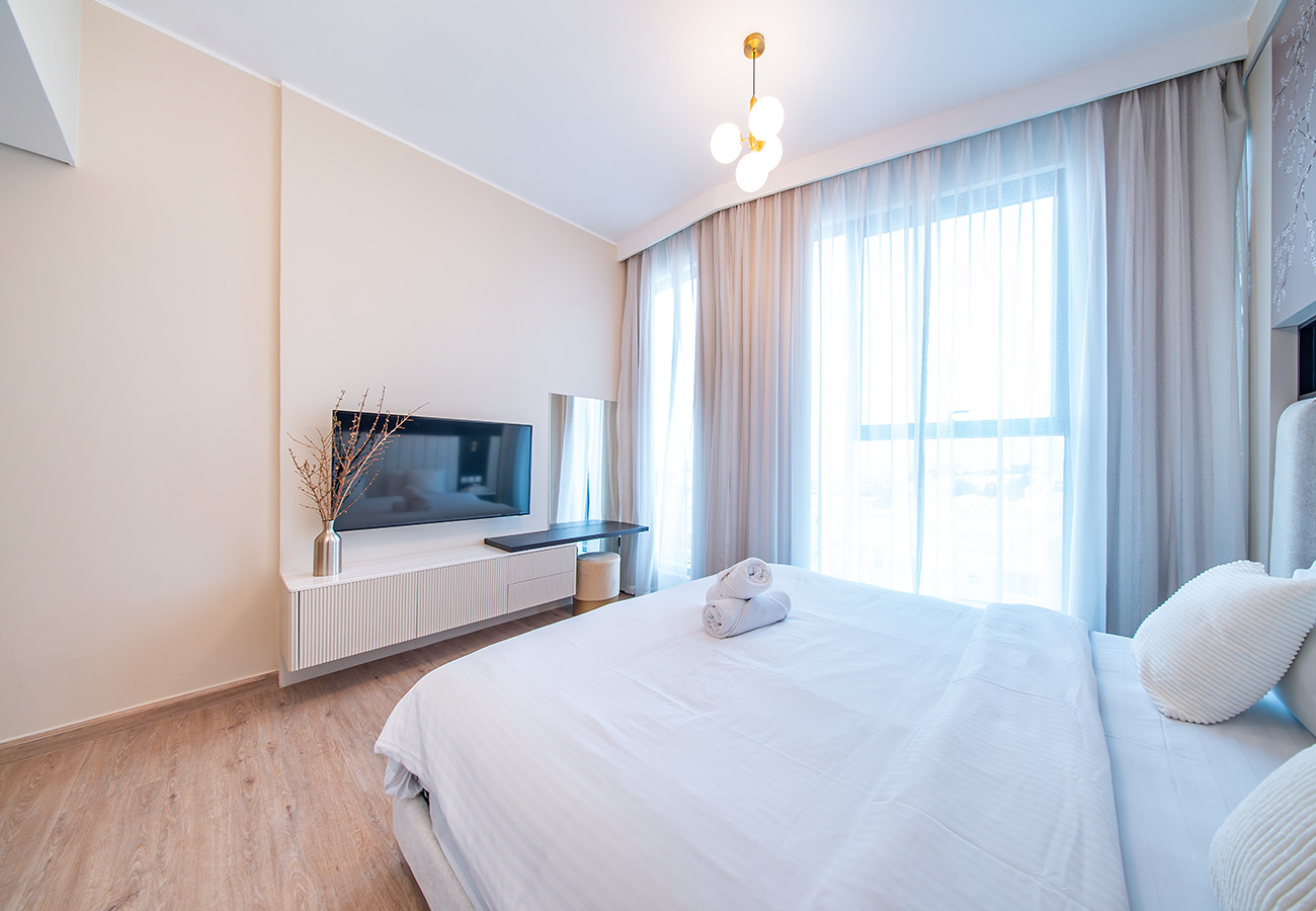 A modern 2-bed apartment in Nasayem Avenue, Mirdif Hills, offering bright interiors, stylish furnishings, and a welcoming layout. The master bedroom provides comfort and privacy, while the second room is perfect for guests or family. Enjoy a spacious living area, fully equipped kitchen, and serene community surroundings with parks, shops, and cafés nearby—ideal for a relaxing and convenient stay.