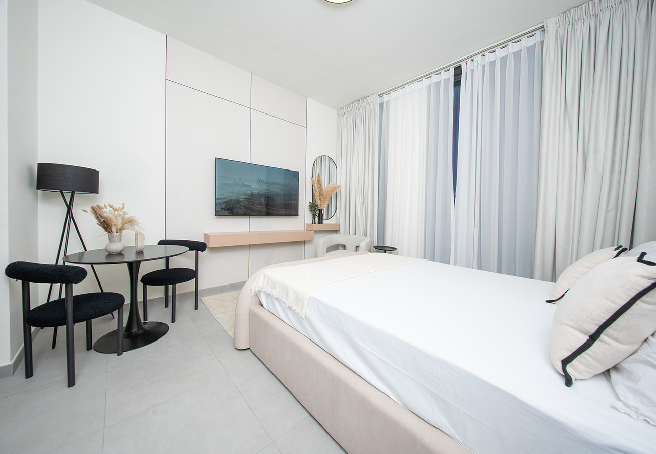 A chic studio in Solo 1 by Arada, featuring modern finishes, smart layout, and bright natural light. The open-plan design includes a cosy sleeping space, sleek kitchenette, and contemporary bathroom. Located in a vibrant community with parks, cafés, and fitness facilities, it offers stylish comfort and convenience—ideal for effortless urban living.